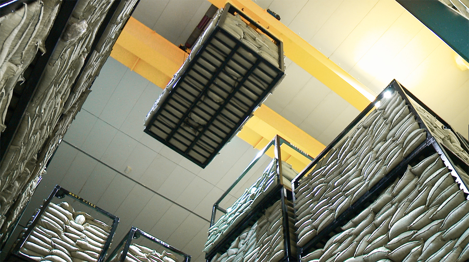 新的儲存方案改變了原有的小筐儲存工藝,將成品大蒜采用專用大筐儲存,并設計專用大筐吊運吊具,通過智能起重機自動識別大筐編碼,自動碼放、自動出庫,可以完全代替人工堆垛。這一方案得到當?shù)卣痛笏馄髽I(yè)的高度關注和支持。