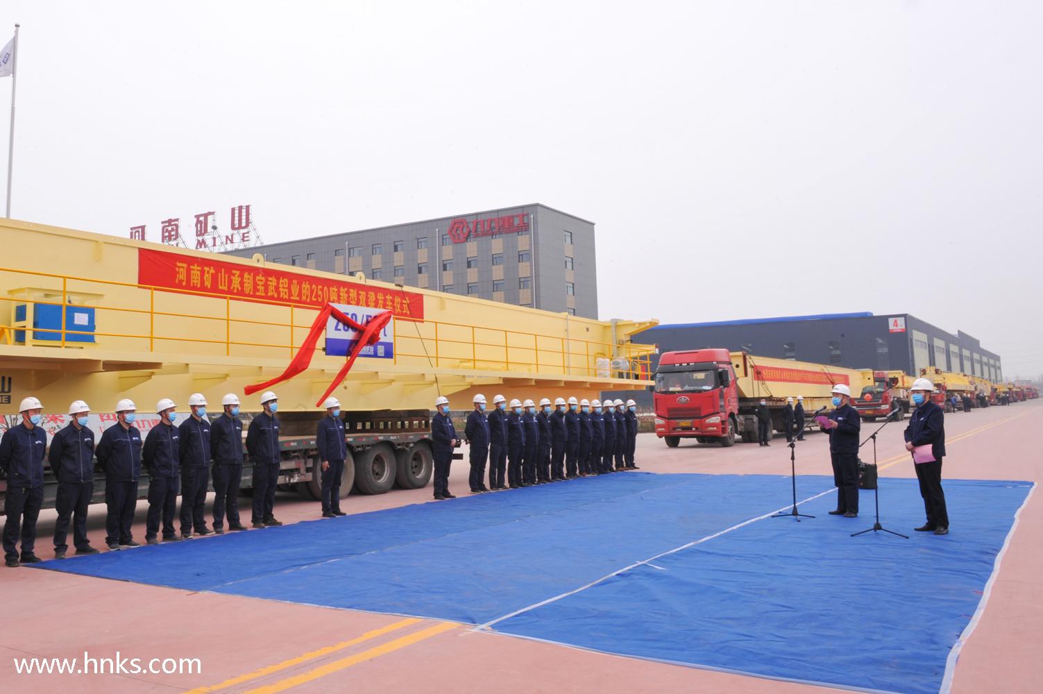 3月2日上午,河南礦山智能產(chǎn)業(yè)園舉行了250/50t等一批新型雙梁起重機發(fā)車儀式。集團公司董事長魏學明、總裁岳相斌、公司